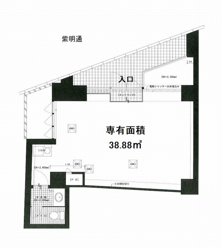 紫明通りに面するマンションの1階にある物件です。